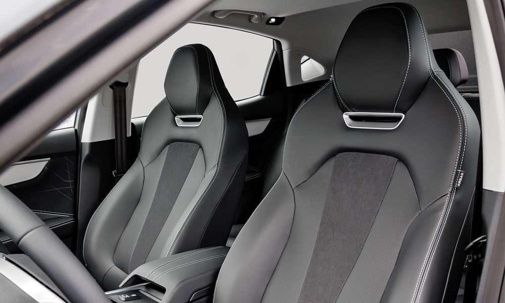 - Кожаная отделка сидений черного цвета с декоративной прострочкой, перфорацией и декоративными вставками